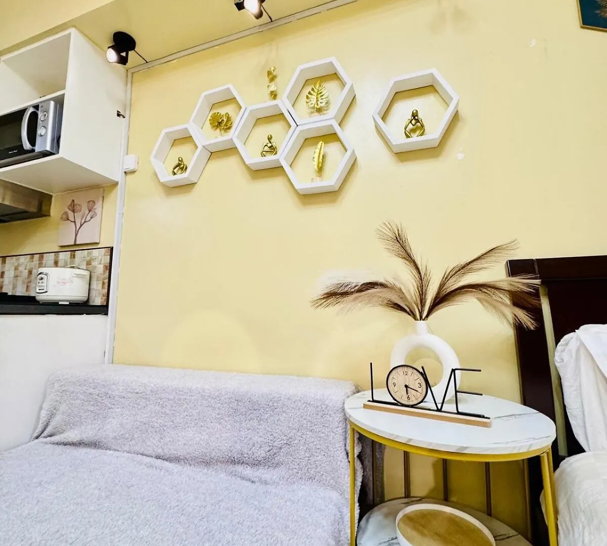 Een ingerichte kitchenette is ideaal voor het bereiden van thuis gekookte maaltijden. Station to Ayala Mall bushalte bevindt zich in de buurt van dit appartement.